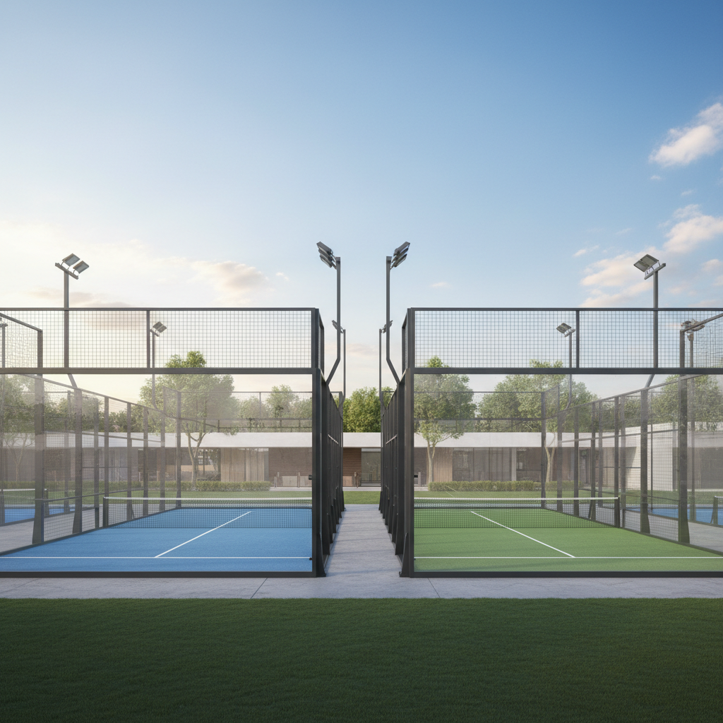 Material permanen yang digunakan untuk membangun lapangan padel juga berperan besar dalam kualitas permainan. Permukaan lantai biasanya terdiri dari bahan yang memberikan traksi yang baik, seperti lantai sintetis atau rumput buatan, sehingga pemain dapat bergerak dengan leluasa tanpa takut tergelincir. Penting untuk memilih bahan yang tepat, mengingat durabilitas dan perawatan lapangan menjadi sangat penting untuk pengalaman bermain yang optimal.